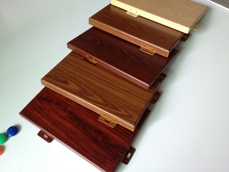 木紋鋁單板采用優(yōu)質(zhì)高強度合金鋁板,國際先進新型圖紋裝飾材料,圖案高檔華麗、色澤紋理逼真、圖紋牢固耐磨,不含甲醛、無毒、無有害氣體釋放,使您不必再為裝飾后油漆和膠類物質(zhì)帶來的異